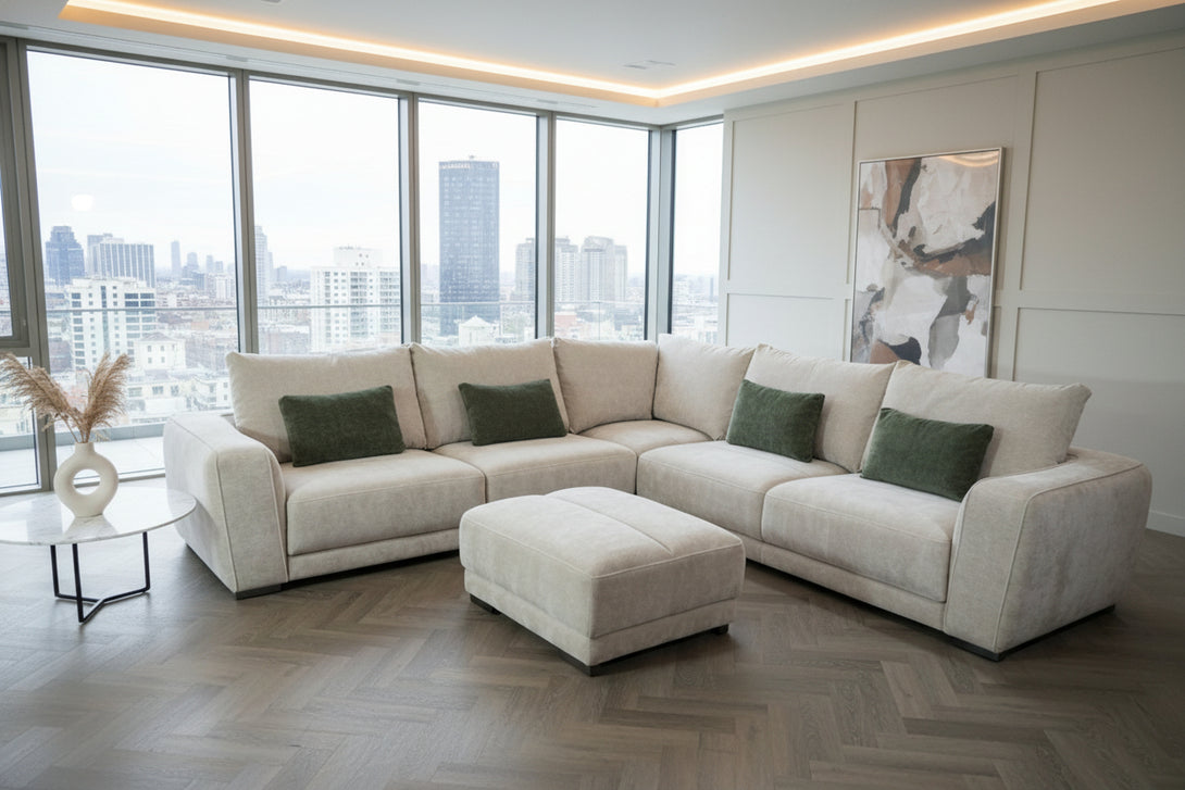 The Ascot Large Fabric Corner Sofa in Chenille Sandstone brings effortless sophistication and comfort to your living space. Upholstered in a beautifully soft, textured chenille fabric, its neutral tone pairs seamlessly with any décor — from classic to contemporary. Generous in size and comfort, Ascot offers the perfect place for the whole family to unwind in style.