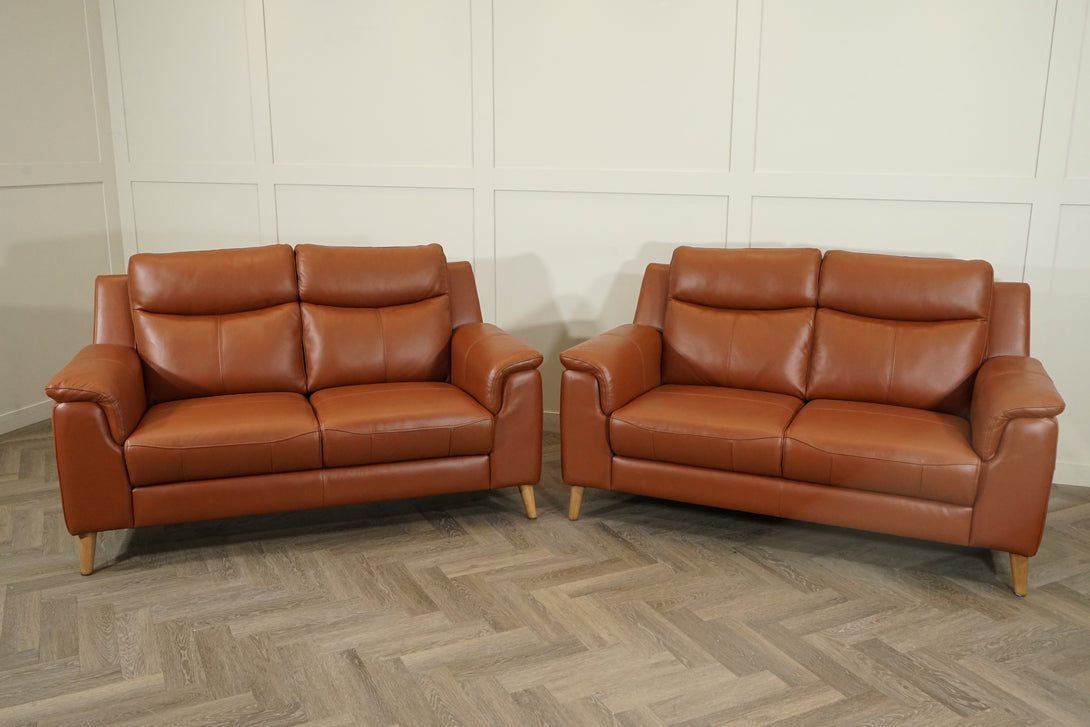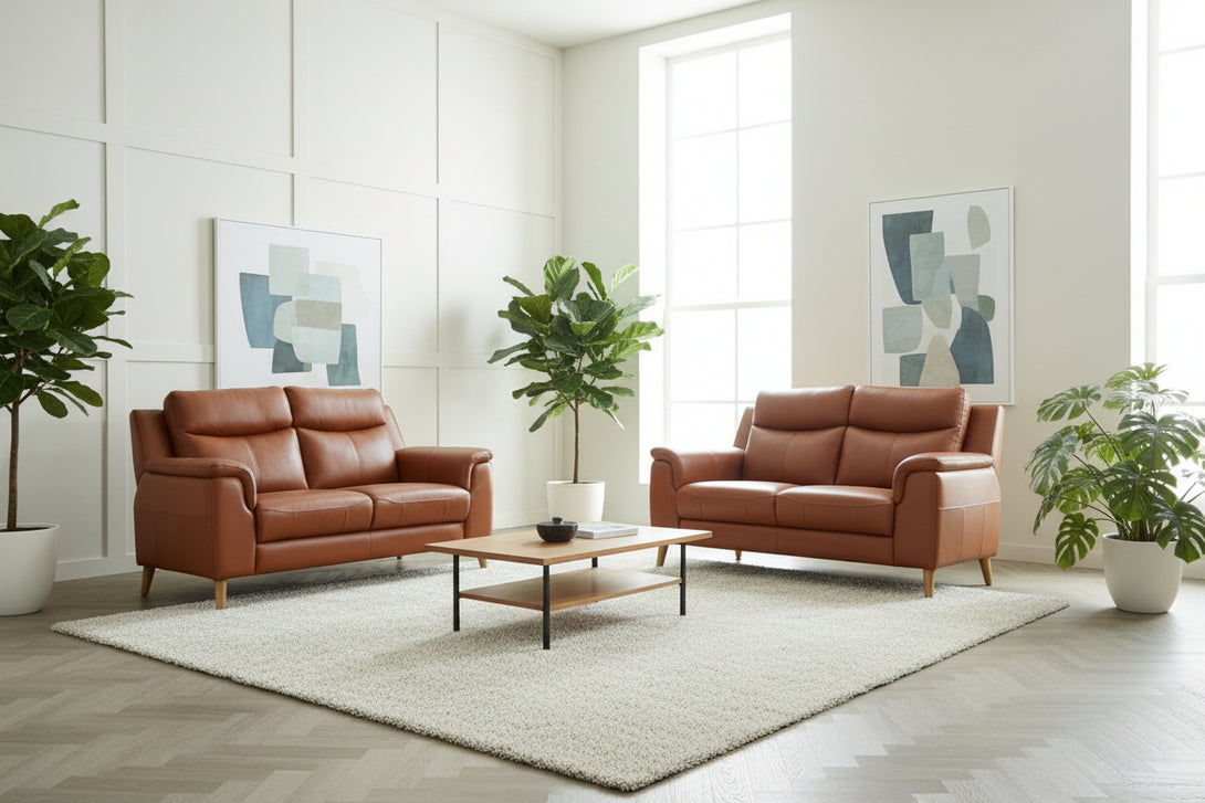 Brodie 2+2 Seater Sofa Set in Tan Leather perfectly balances timeless design with modern functionality, creating a luxurious and versatile suite that enhances any contemporary living space. Crafted from the finest quality leather, this beautifully made set blends enduring style, supple comfort, and everyday practicality in a sleek, understated silhouette.