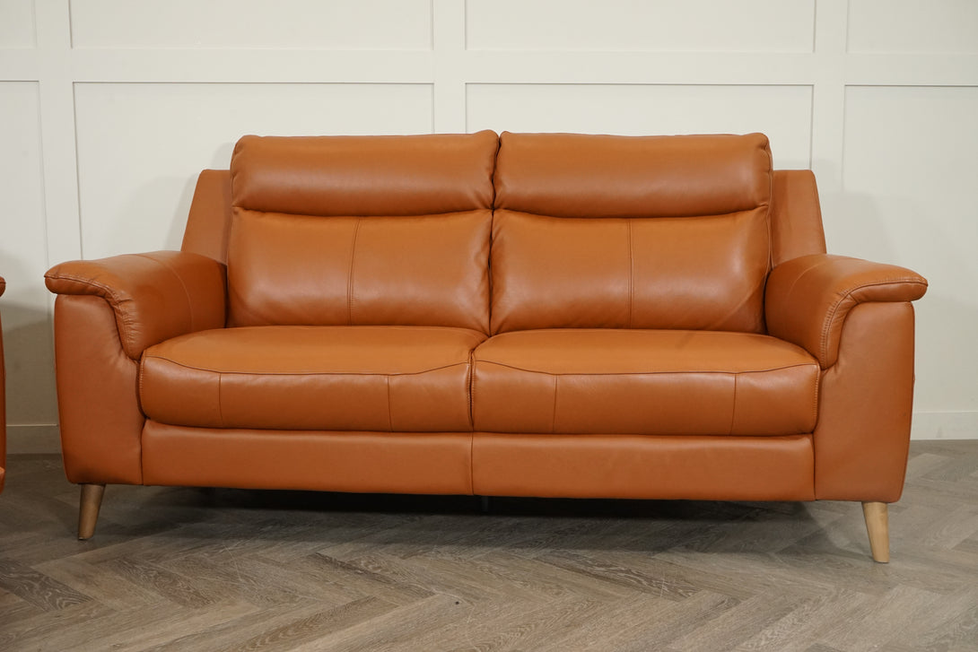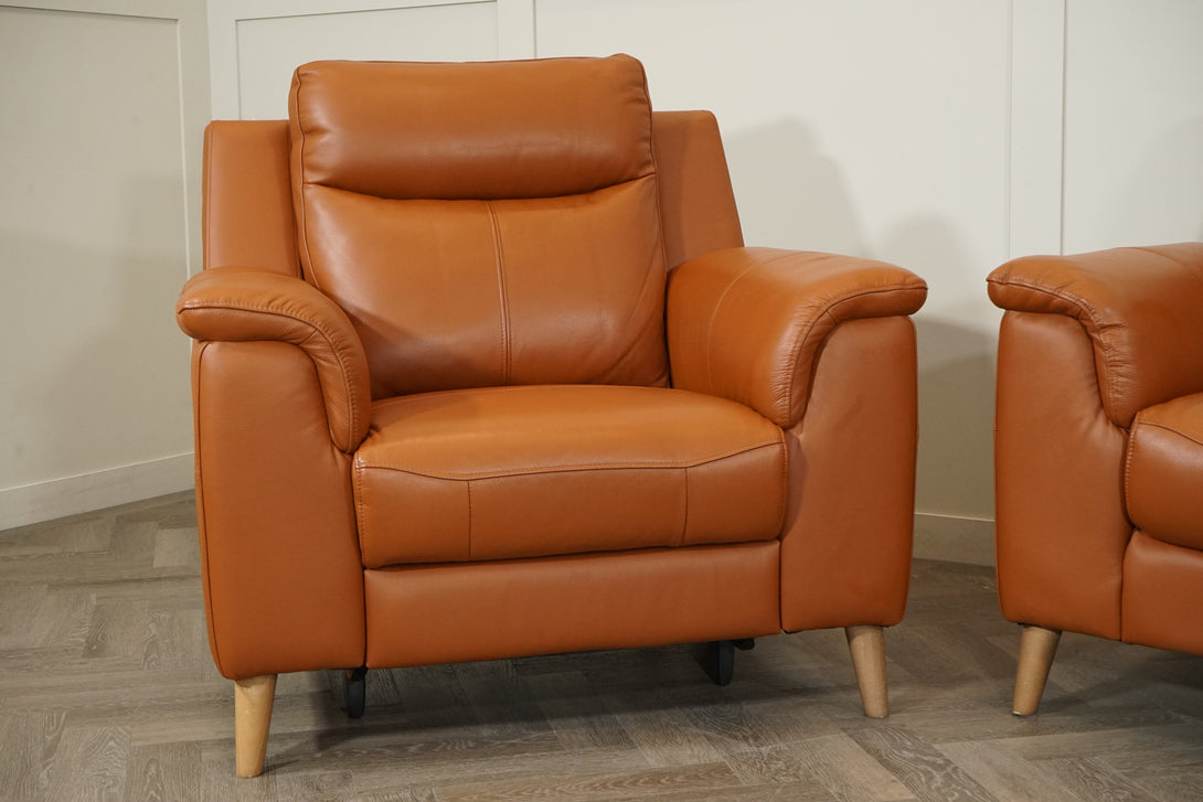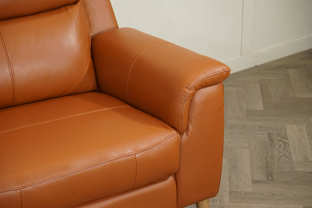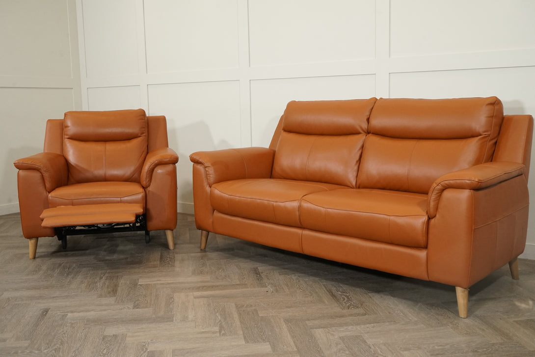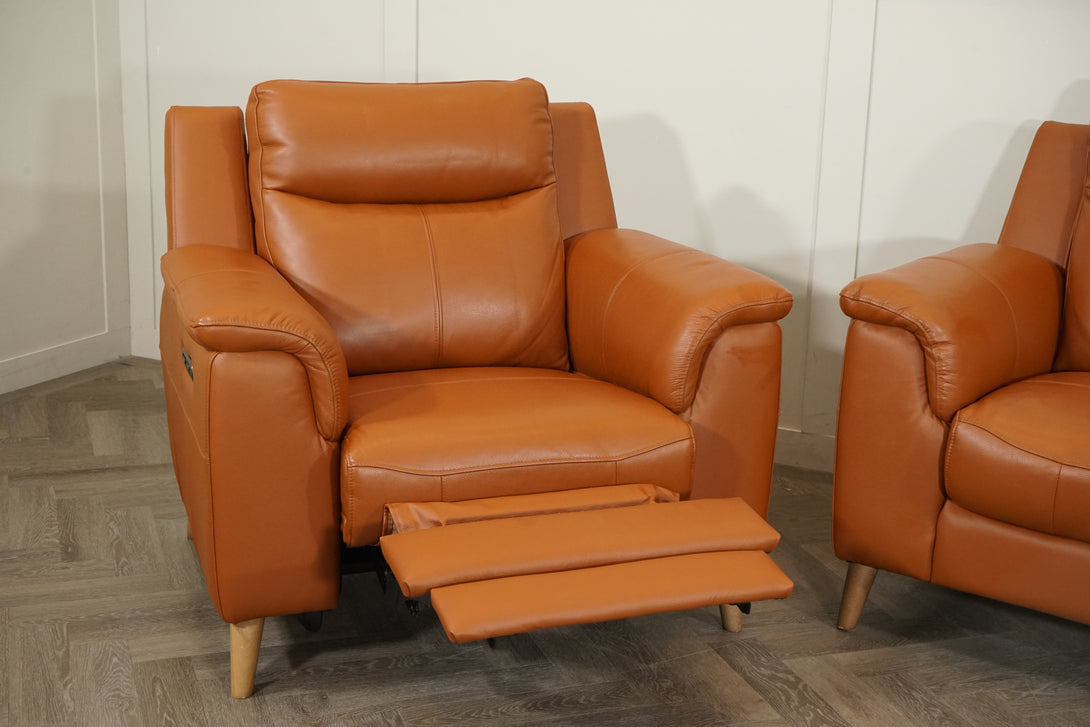Brodie 3 Seater Sofa & Power Reclining Armchair Set in Tan Leather is the perfect pairing of sleek design, sumptuous comfort, and modern functionality. Crafted from premium quality leather in a warm Tan finish, this versatile duo brings effortless elegance and everyday practicality to any living space.