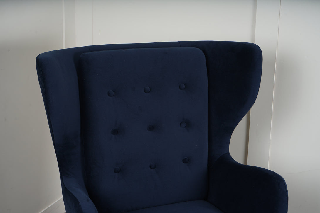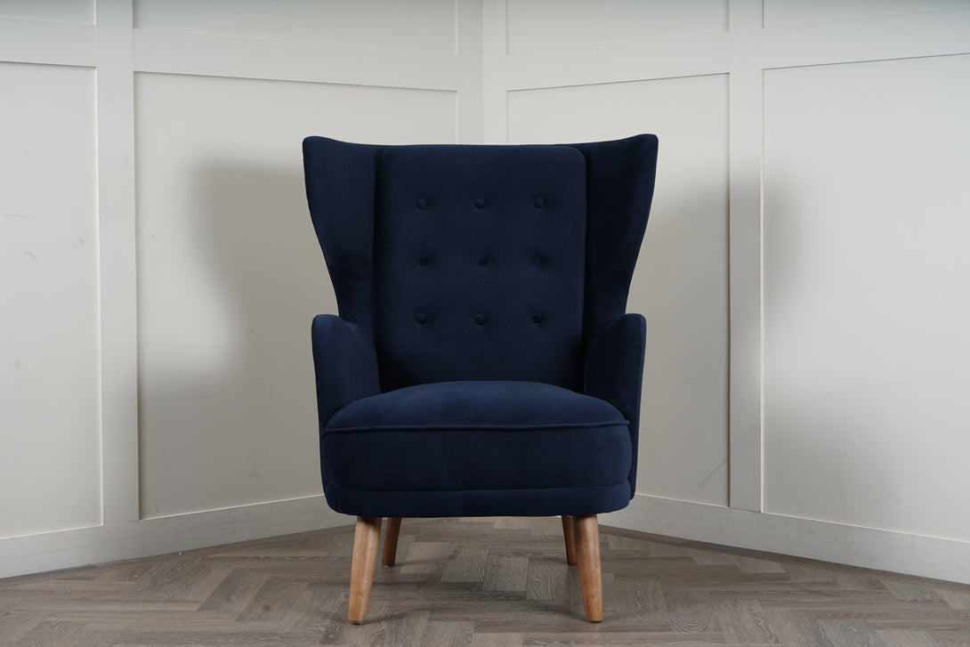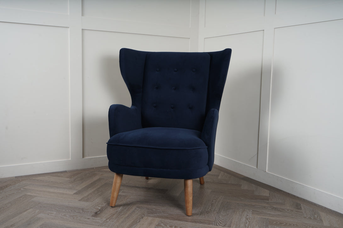 The Canopy Armchair in Plush Velvet Navy offers the perfect blend of retro charm and contemporary comfort. With its cocooning silhouette and elegantly winged sides, this armchair invites you to unwind in style. The deep navy velvet upholstery brings a rich, luxurious feel, while the sculpted high back and supportive cushioning provide exceptional comfort and poise.
