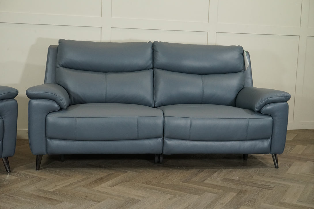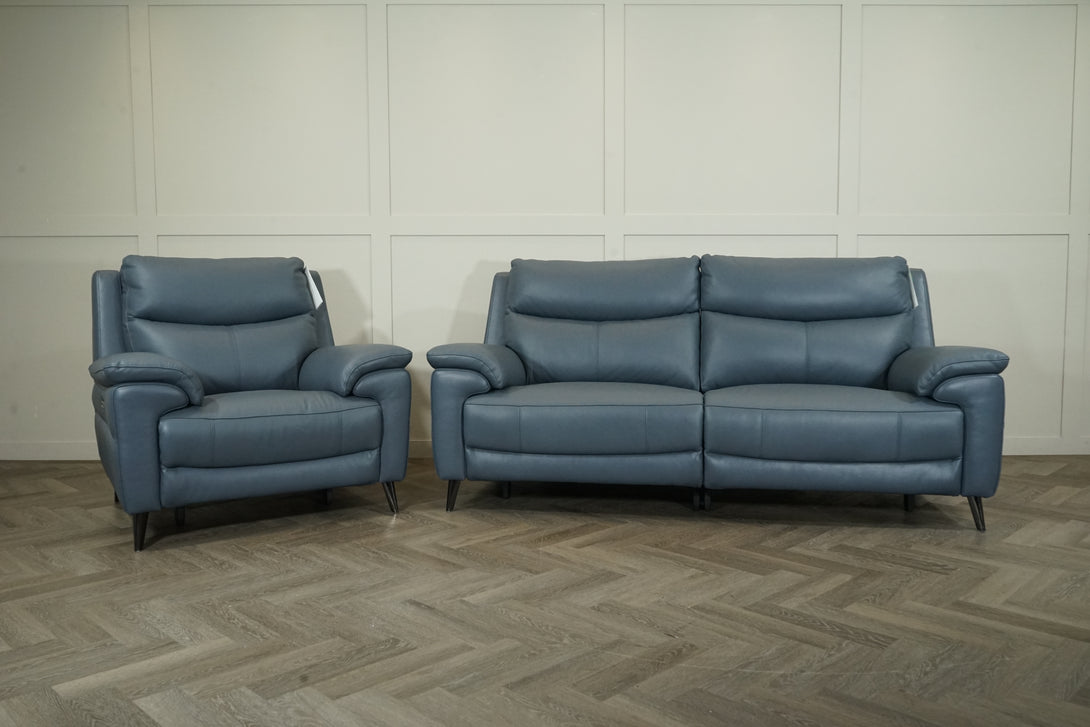 The Como 3 Seater Leather Sofa & Armchair in Peacock offers the perfect blend of modern sophistication and exceptional comfort. Upholstered in 100% genuine supple leather (with no leather match), this beautifully crafted set embodies premium quality and contemporary design. Its smooth, soft-touch finish and subtle blue tone bring an elegant vibrancy to any living space.