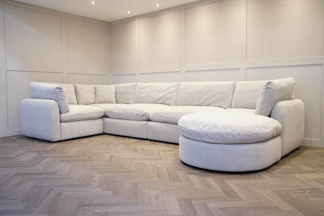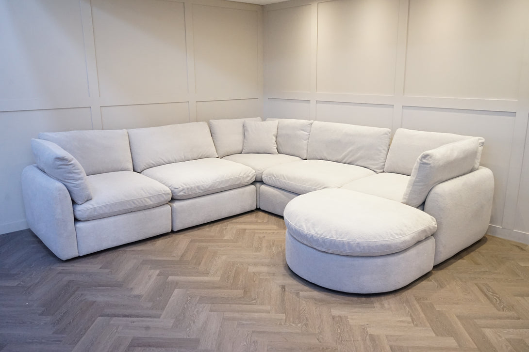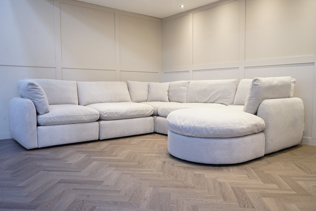 Bring airy elegance and sink-in comfort to your living space with the Cozy Cloud 2 Corner 2 Large Fabric Corner Sofa with Half Moon Footstool, Silver Marshmallow. With its softly curved arms and deep, inviting seats, Cozy Cloud is the perfect blend of contemporary style and cosy relaxation—ideal for both modern family homes and laid-back lounging.