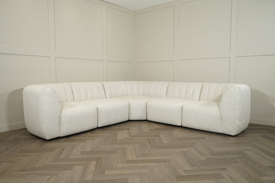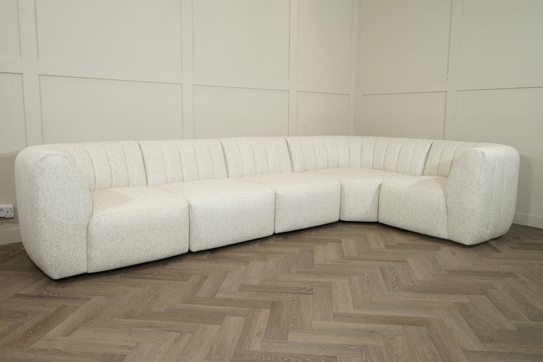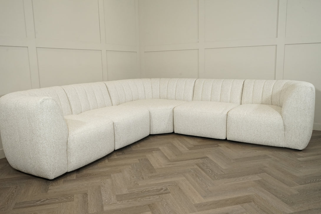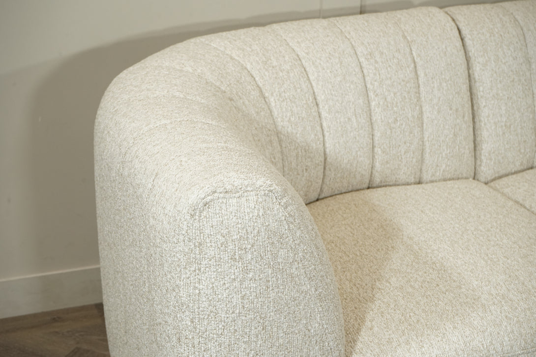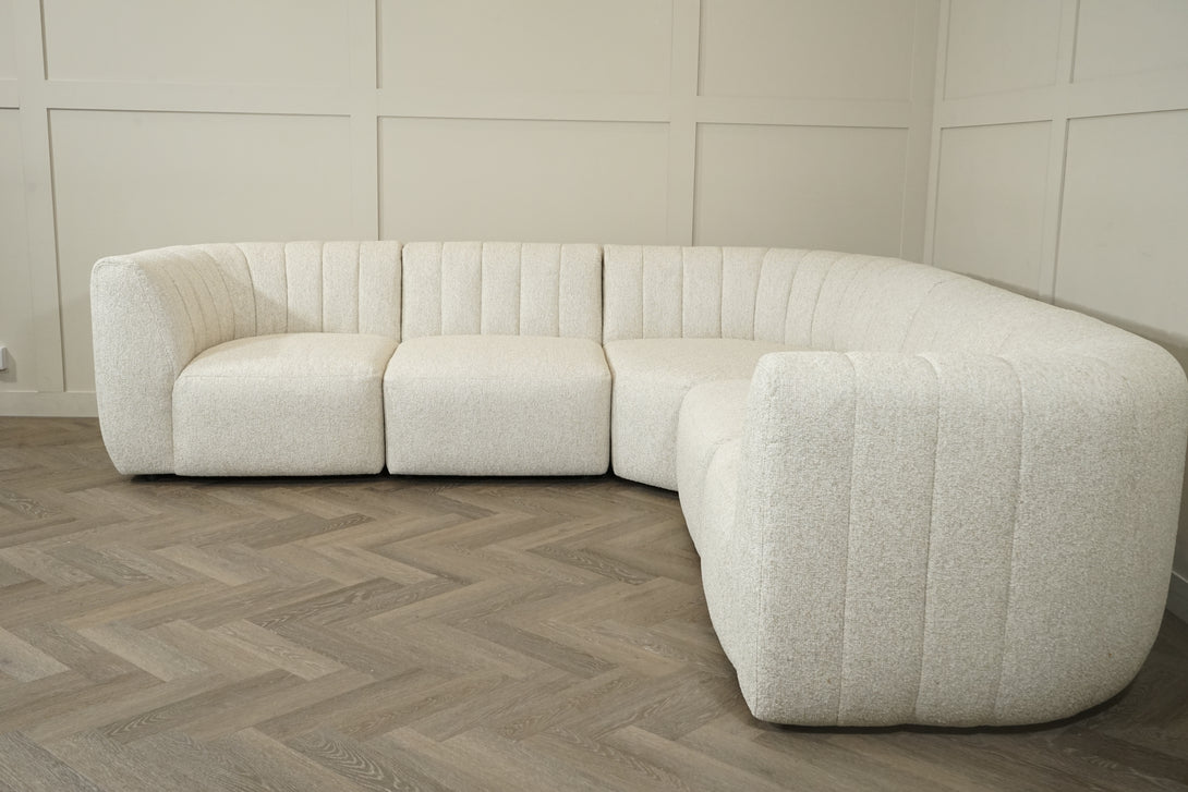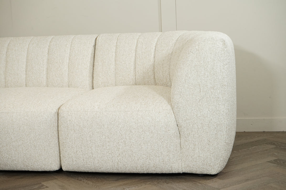 With its sweeping curves and sculptural design, the Flow Corner Sofa delivers an effortlessly modern statement — all while maintaining a soft, neutral presence in your living space. Upholstered in tactile soft boucle in a natural tone, its low-profile form offers both elegance and comfort.