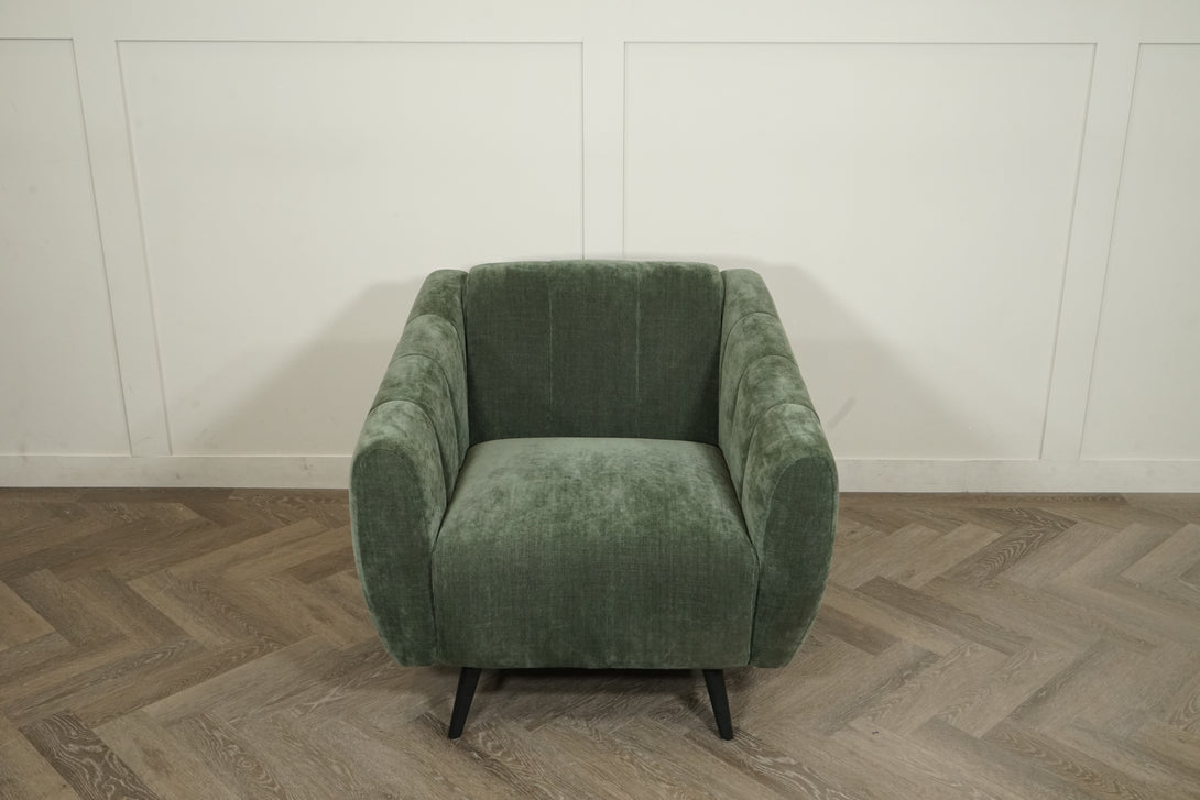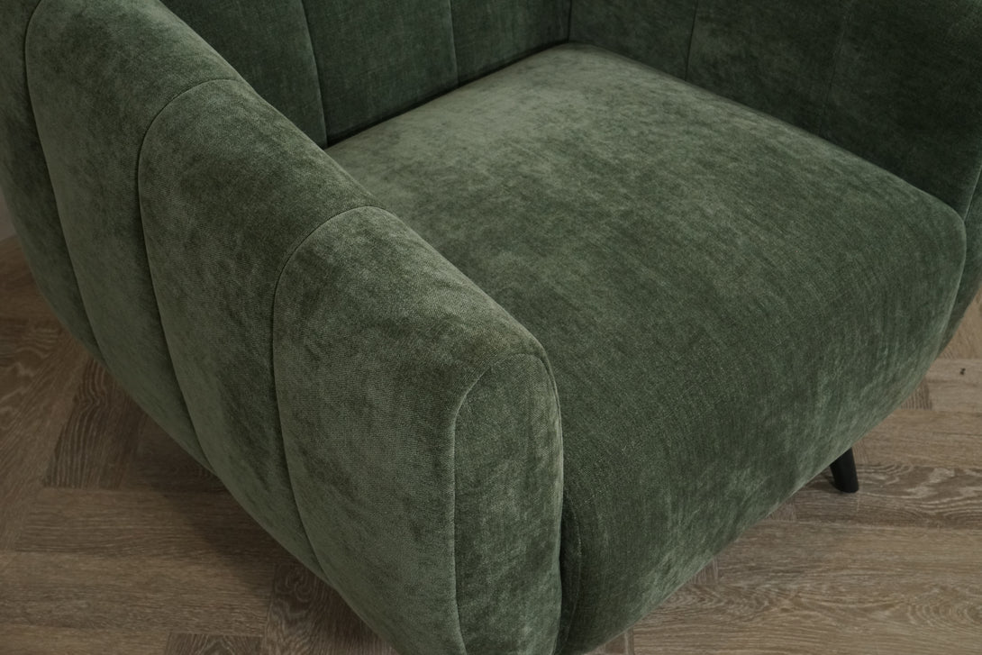 - Soft, textured deep-sage green upholstery for a warm, inviting feel