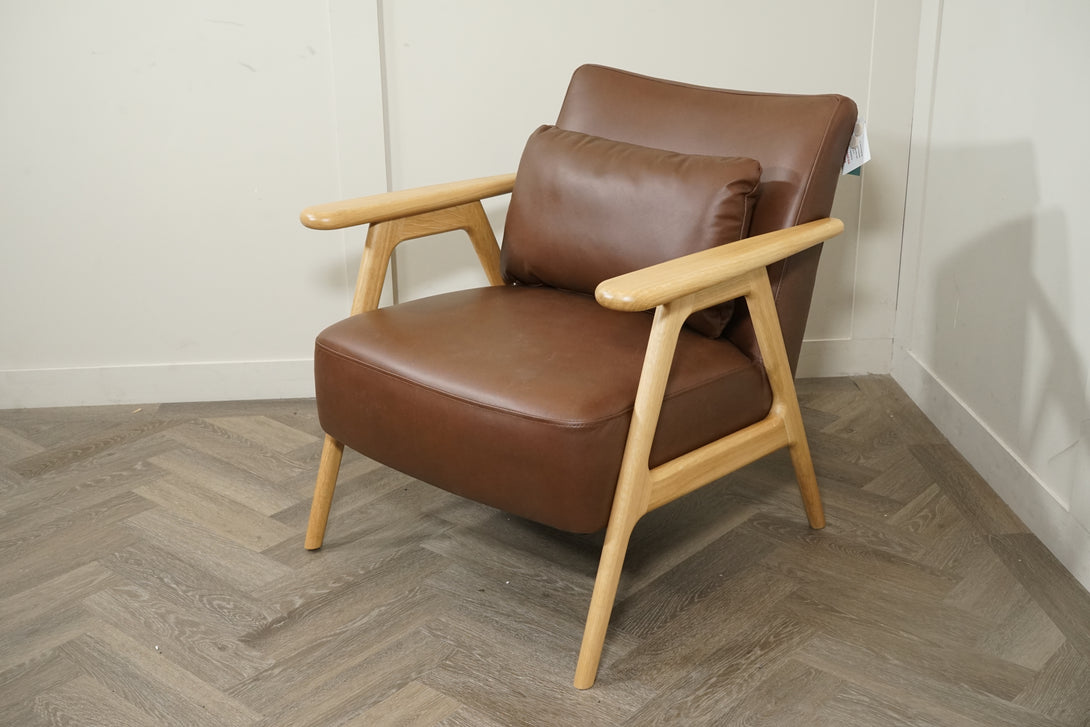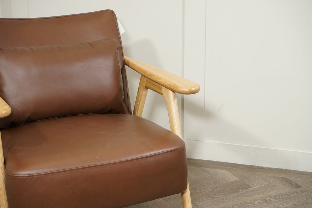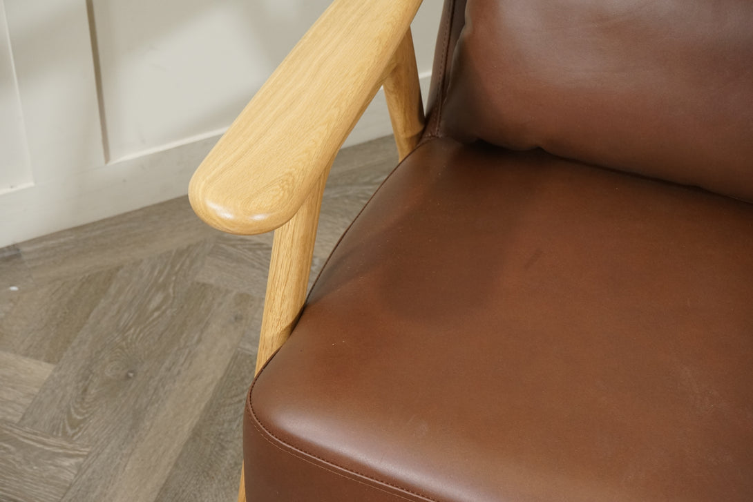 The Hendricks Leather Armchair in Premium Cocoa perfectly blends mid-century elegance with modern craftsmanship. Upholstered in supple, premium leather, it’s beautifully complemented by an exposed solid oak frame that highlights its refined, minimalist style. Designed with both form and function in mind, Hendricks brings a timeless sophistication to any space — from contemporary lofts to classic living rooms.