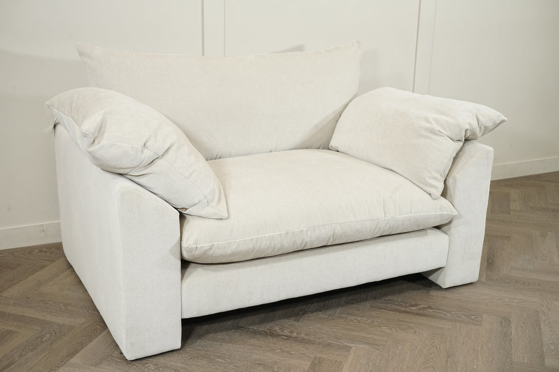 Experience the luxurious comfort of the Hoxton collection with this inviting 4 Seater Sofa and Snuggler Chair set, upholstered in soft-touch Dusk Ecru chenille. Designed for laid-back lounging with a contemporary edge, both pieces combine deep, feather-filled cushions and clean-lined silhouettes to bring relaxed sophistication to any modern living space.