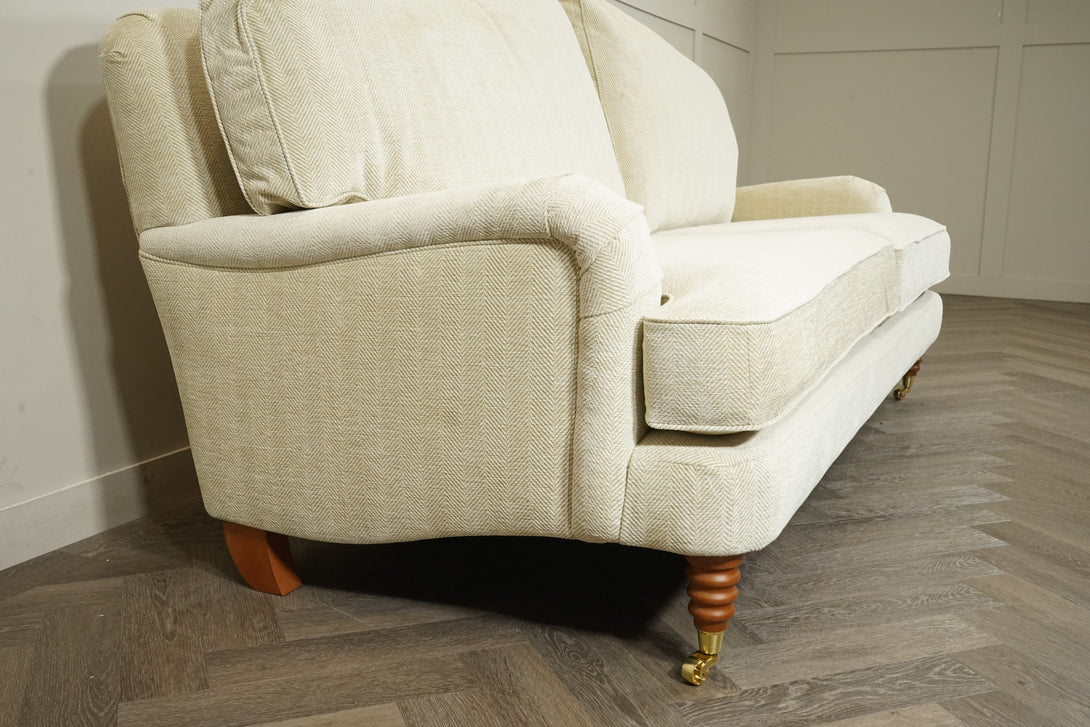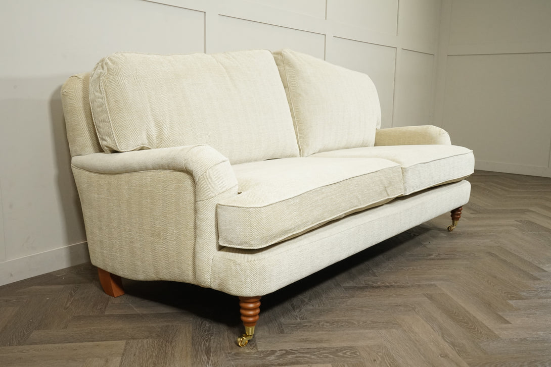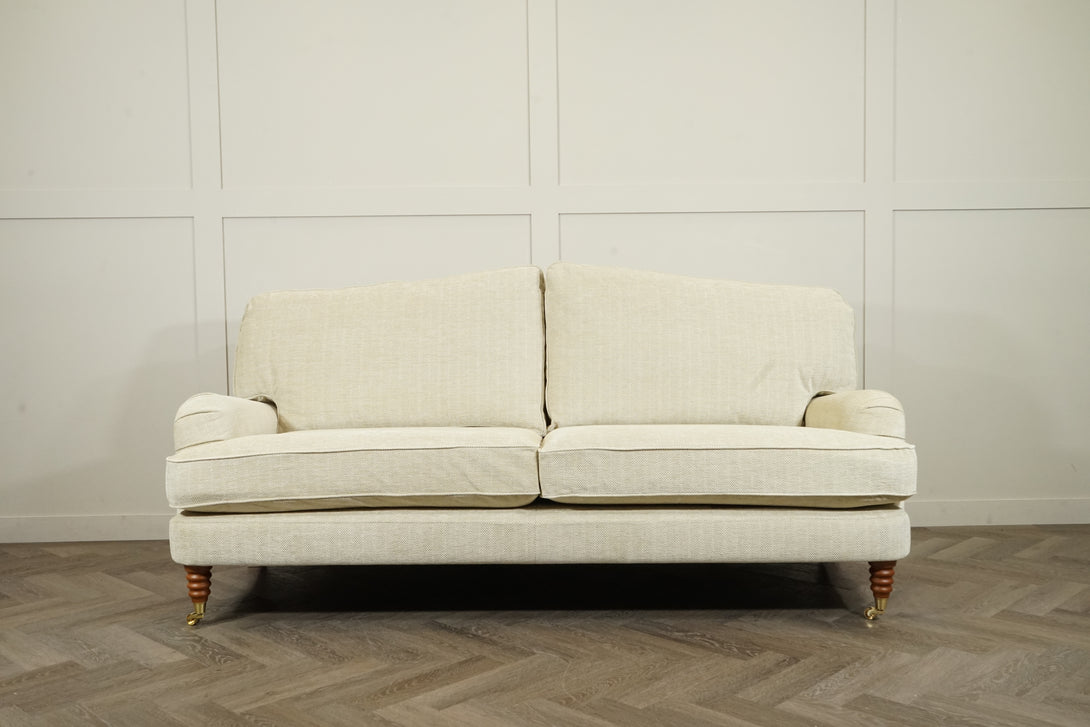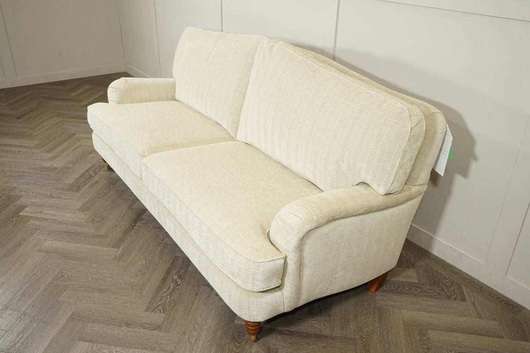 The Laura Ashley Lynden Large 3 Seater Sofa in Edwin Natural is the embodiment of timeless British elegance. Exquisitely crafted, this sofa’s classic silhouette, pleated arm detailing, and tailored upholstery create a look of refined sophistication. Upholstered in the beautifully textured Edwin Natural fabric, it brings warmth, charm, and versatility to any interior scheme.
