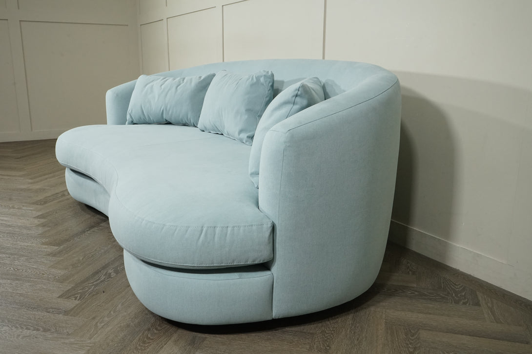 The Lozenge Large 3 Seater Sofa in Easy Clean Eco Cotton Powder Blue combines fluid design with refined modern comfort. Its organic curves and sculptural silhouette create a striking focal point that softens and elevates contemporary interiors. Upholstered in a beautifully smooth, eco-friendly cotton fabric, it offers a tactile feel that’s as durable as it is elegant — and effortlessly easy to clean.