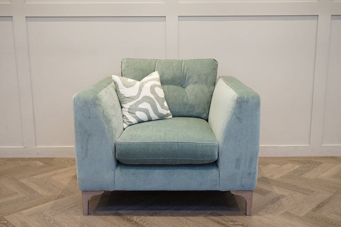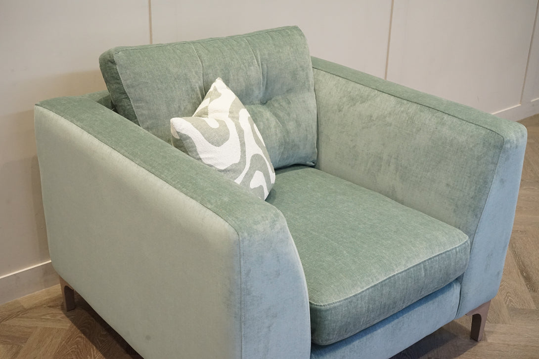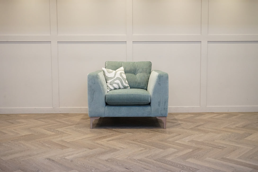 - Contemporary armchair in luxurious Dusky Jade fabric