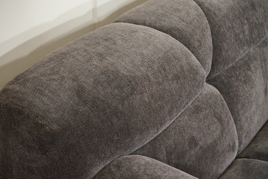 What truly sets the Monroe apart is its sculptural silhouette. From the bold, structured lines to the generously padded curves, this sofa commands attention while wrapping you in a cocoon of softness. The chunky channeled quilting on both the seat and back cushions adds visual intrigue and next-level comfort, making it as indulgent to sit on as it is to look at.