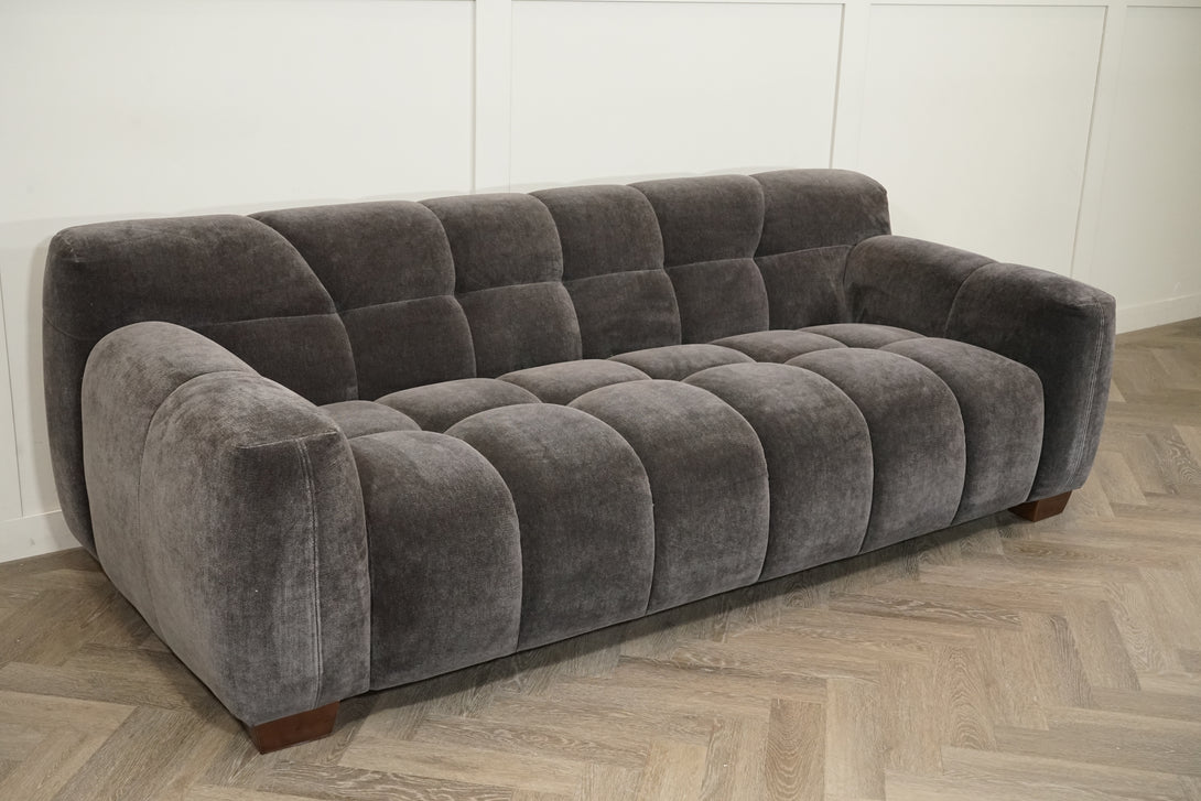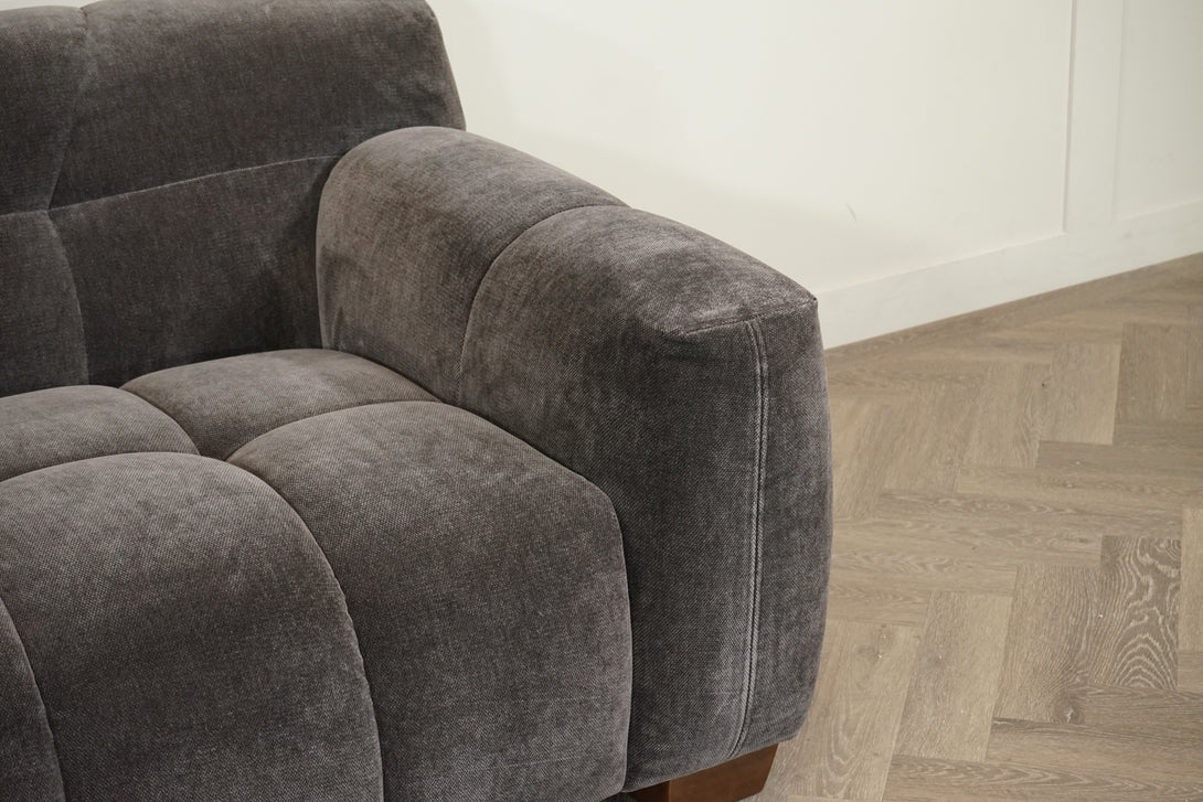 What truly sets the Monroe apart is its sculptural silhouette. From the bold, structured lines to the generously padded curves, this sofa commands attention while wrapping you in a cocoon of softness. The chunky channeled quilting on both the seat and back cushions adds visual intrigue and next-level comfort, making it as indulgent to sit on as it is to look at.