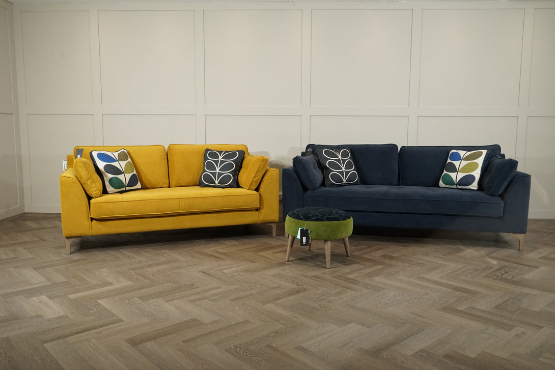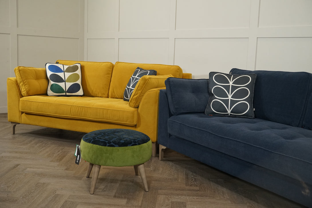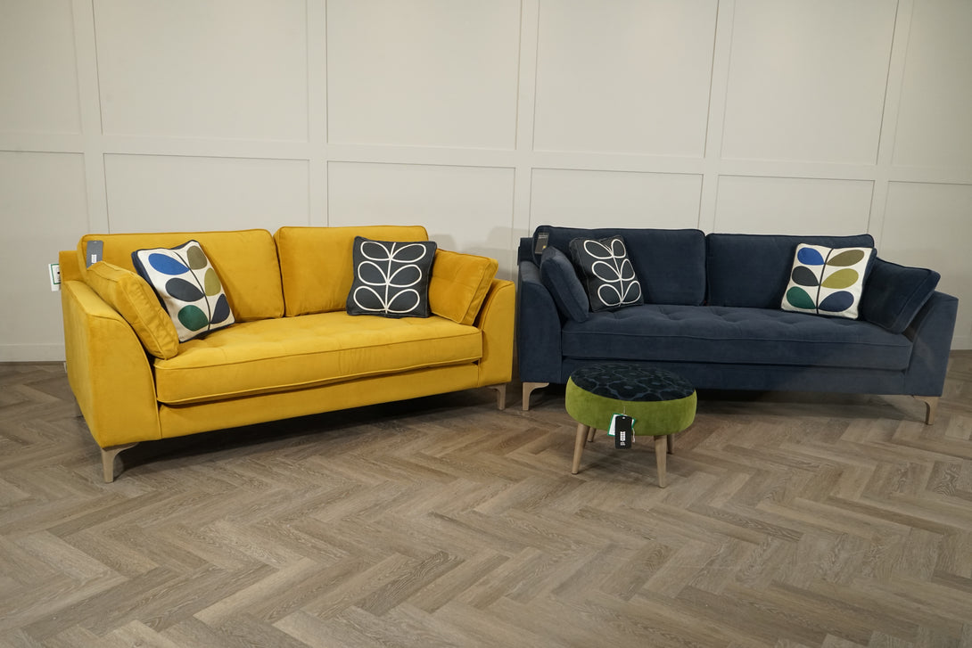 - Includes: 3 Seater Sofa (Clara Navy) & 2 Seater Sofa (Clara Sunflower)