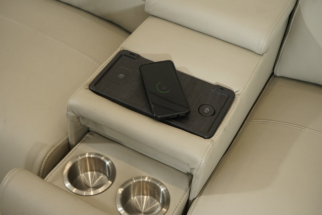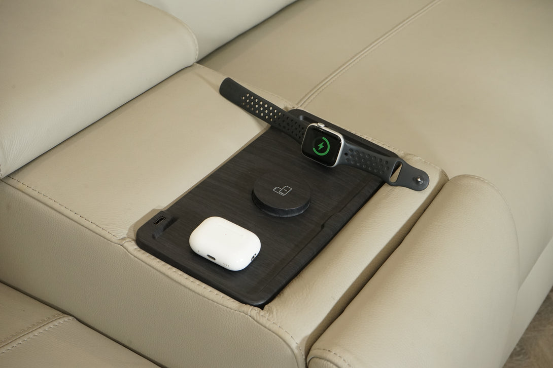 - Detachable smart console with wireless charging for mobile, AirPods & Apple Watch, plus USB-C and standard USB ports