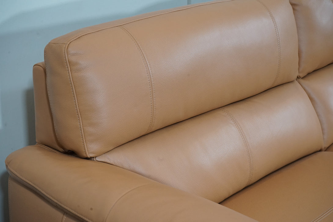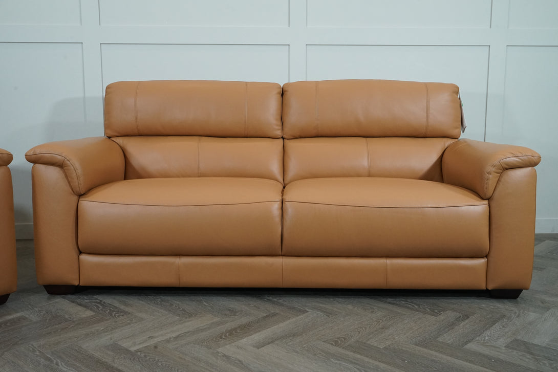 Designed with comfort and craftsmanship in mind, the Rimini offers deep, supportive seating that invites you to unwind. Its generous proportions and sleek lines create a luxurious look that never goes out of style, while the natural warmth of the tan leather adds an inviting touch to any home.